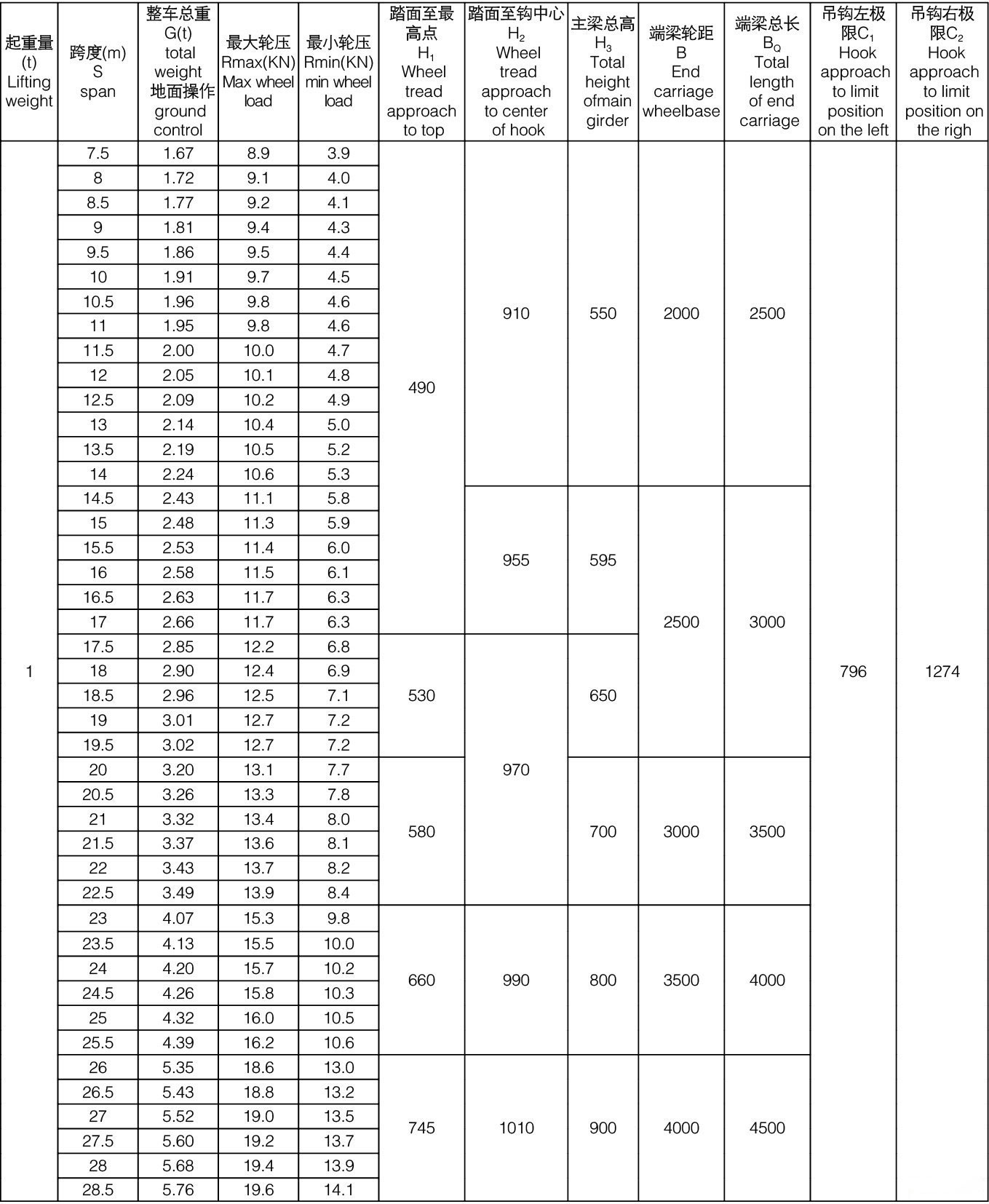起升吨位:1-16吨